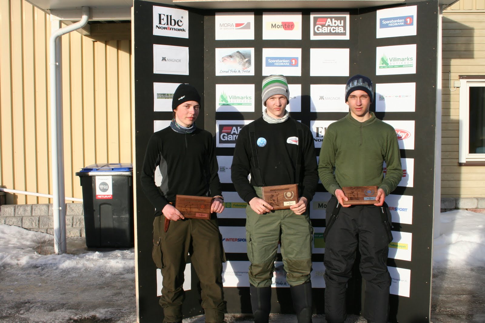 Topp 3 junior gutter. Nr.1 Lasse Rudshaug, Odal SFK (4158 gram). Nr.2 Vegard Vestby, Odal SFK (2858 gram). Nr.3 Trevor J. Hansen, Jømna Heradsbygd JFF (2148 gram)