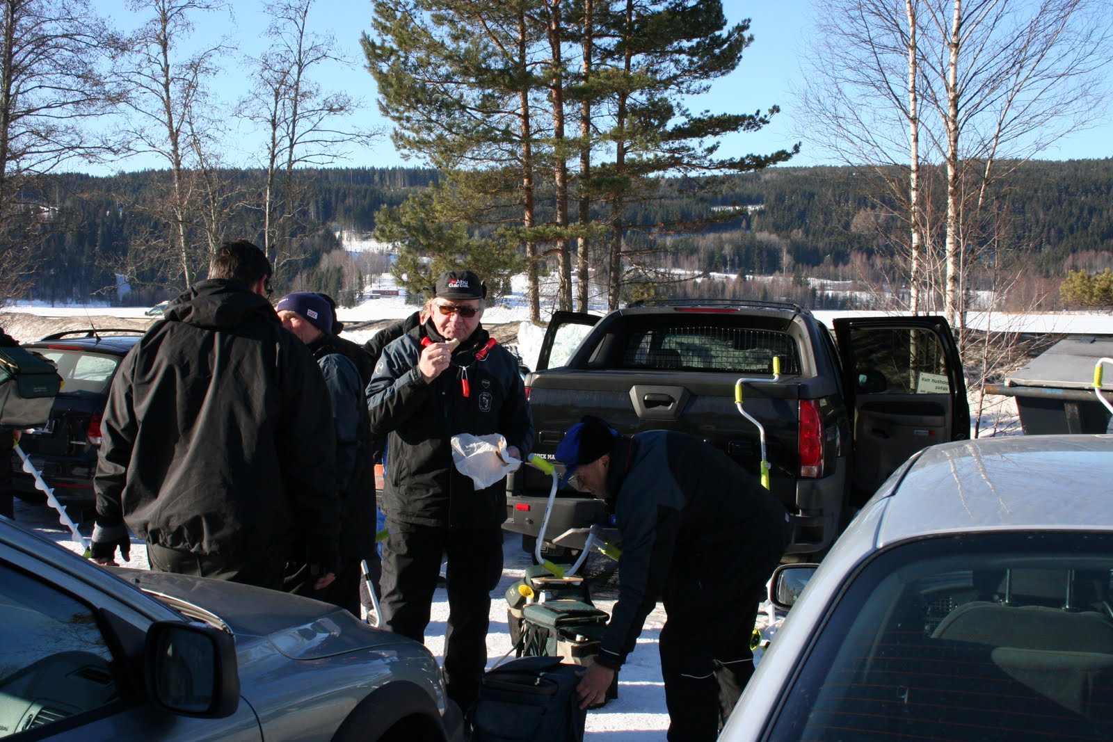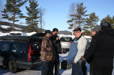 Litt fiskeprat før start- På bildet ser vi bl a Cato Røenbakken, "Dimman", Finn Arne Gammeltorp og Jan Fredrik Sandvold